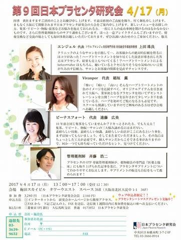 この度、2017年4月17日、大阪の梅田スカイビルにて「プラセンタ研究会」に登壇させていただくこととなりました。